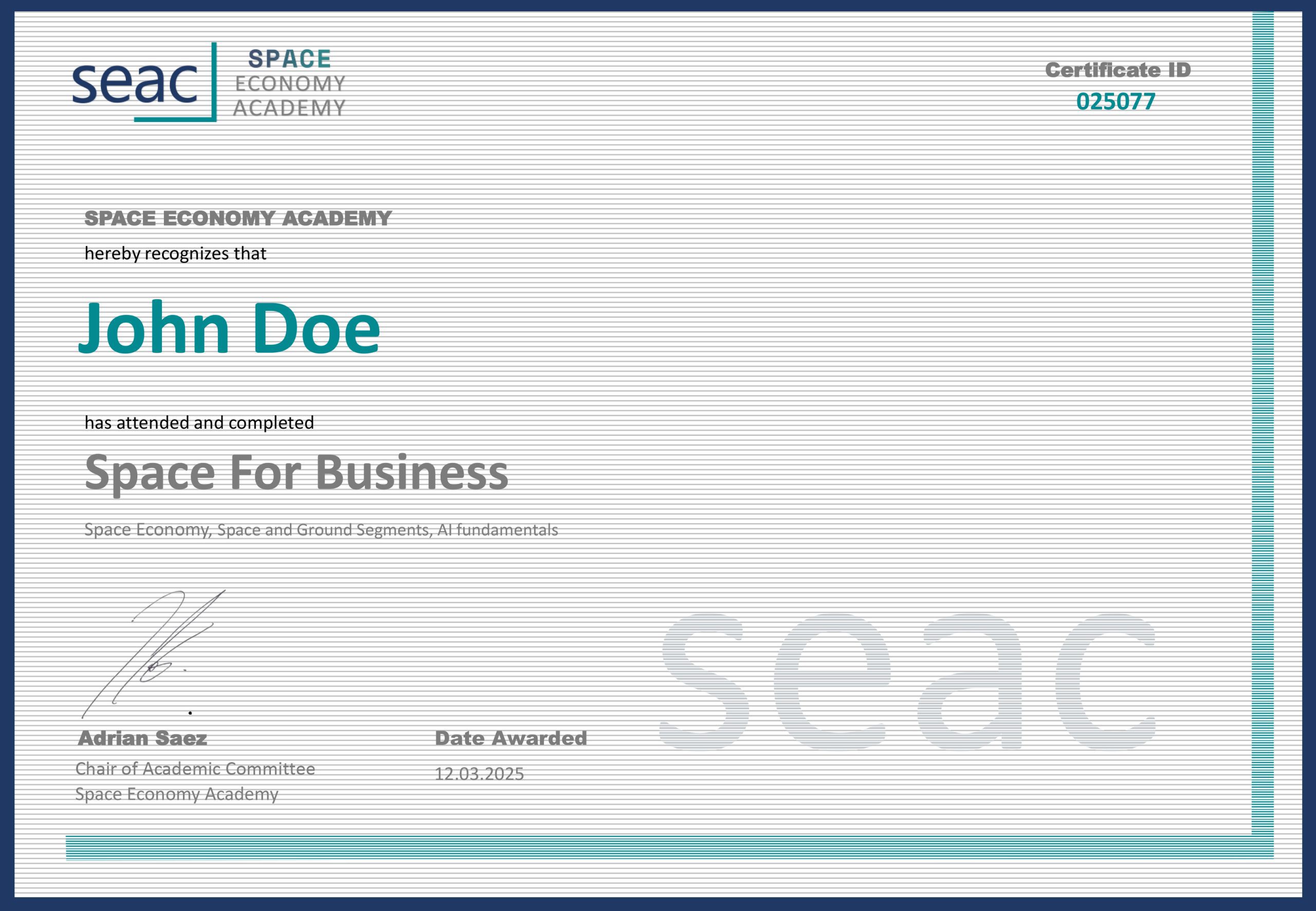 SEAC – Certificate of Completion